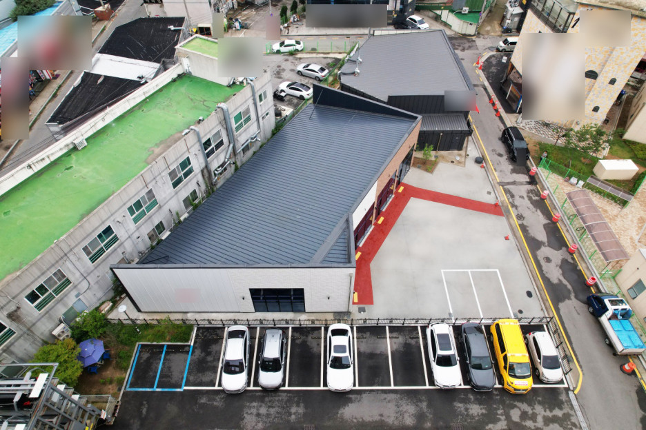 일반적으로 조립식 건축은 지붕이 외부에서 드러나 '조립식 건물'이라는 인상을 주곤 합니다.